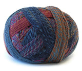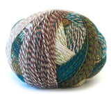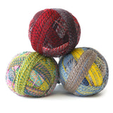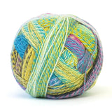 Zauberball® has been kicked up a notch, as two strands of the main ply have been dyed individually and then twisted together for a crazy combination! The end result is a self-striping multi-colored pattern, with a bold, variegated design!
