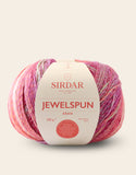Jewelspun blends opulent gem-like tones in a gorgeous self-striping yarn. It has the hand-dyed, hand-spun look so popular with knitters around the world, but in a softer, light weight yarn that’s a treat to knit or crochet and easy to care for too.